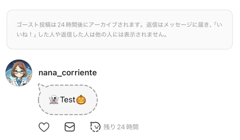 ゴーストポストは、投稿してから24時間でタイムラインから自動的に消える投稿機能だ。