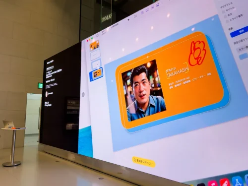 まず参加者は、今年度の目標をiPhoneの「メモ」アプリに書き出す。アイデアに迷う人向けには、「1日100人にありがとうと言う」などのキーワードが書かれた “ミステリーボックス” も用意され、引いた言葉をそのままテキスト認識機能で読み取ってデジタル化。作成したメモはHandoffでMacへ引き継ぎ、大きな画面での編集作業へと移行した。