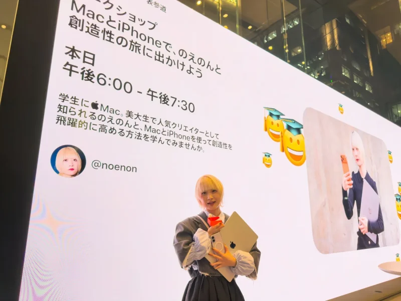 また、今回のセッションを行った「Apple 表参道」は、のえのんさんにとっては活動初期から深く関わってきた原点のひとつだという。新しいApple製品を購入する際には、必ず同店を訪れ、その様子を撮影するのが恒例となってきた。