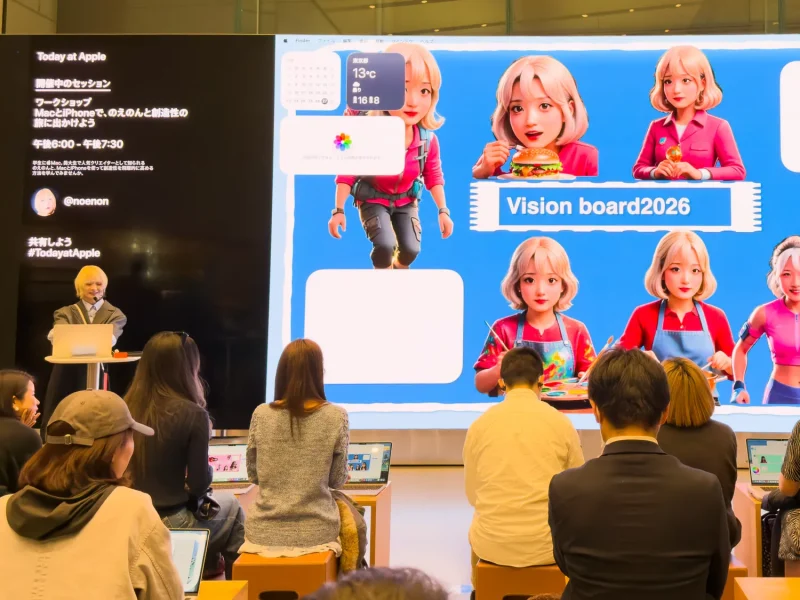 セッションの締めくくりには、完成したビジョンボードをMacのデスクトップ壁紙に設定する方法も紹介された。のえのんさん自身、日頃から目標を視界に入る場所に置くことを習慣にしていると話しており、その実践例としての提案だという。日常的に目に触れる環境をつくることで、意識の持続につなげていく──そんな工夫も、このワークショップの重要なポイントのひとつとなっていた。