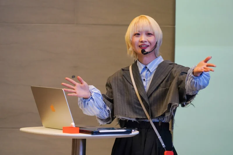 講師を務めたのは、現役の美大生でありながら活動10周年を迎えたマルチクリエイター・のえのんさん。大学では彫刻を専攻し、音と造形を組み合わせた作品制作に取り組む一方で、YouTubeをはじめとする幅広い分野で表現活動を続けている。