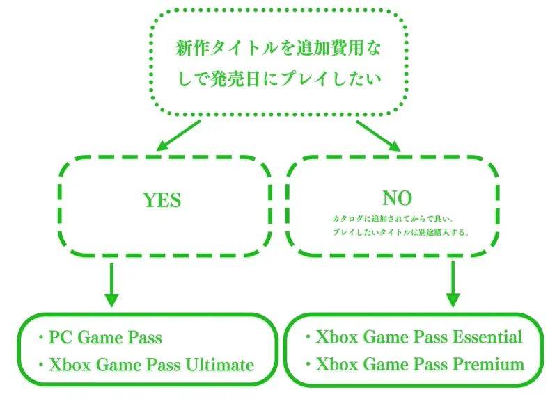 - 新作を発売日に遊びたい → Ultimate、PC Game Pass