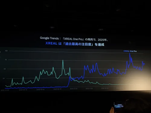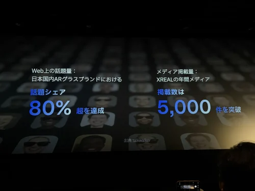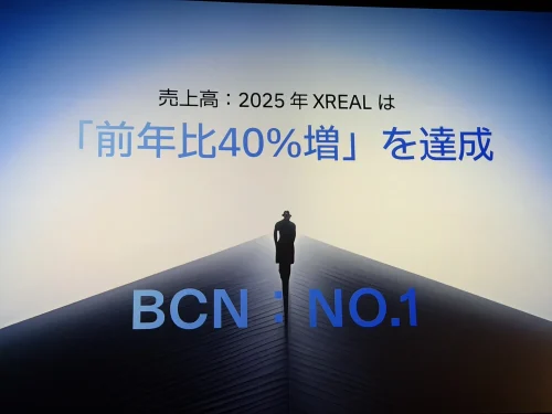 XREALは2025年を「収穫祭の年」と位置づけ、日本市場での存在感が大きく伸びたことを強調する。売上は前年比40%超と持続的成長を維持しており、話題シェアやAmazon検索シェアは80%を超えた。