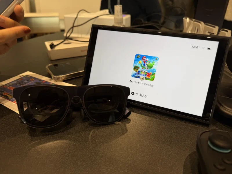ゲーマー向けに用意されたのが「XREAL Neo」だ。10,000mAhバッテリーとUSBハブ機能を備えるNeoは、Nintendo Switch 2を接続すると端末をテレビ(ディスプレイ)として認識させ、ドックなしでTVモードを起動できる。外出先での大画面プレイに対するボトルネックを、ハブと電源の両面からまとめて解消する設計だ。