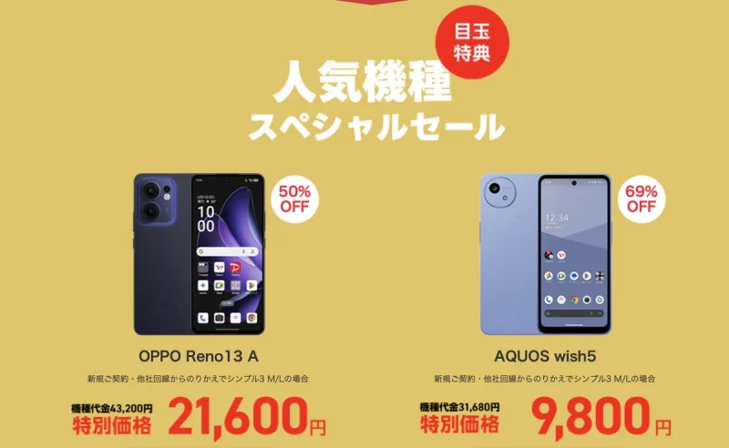 AQUOS wish5は約69%オフの9,800円。価格だけを見るとエントリーモデルからミドルクラスまで一気に選択肢が広がる印象だ。メイン端末としてはもちろん、サブ端末を探している人にも現実的なラインアップと言える。